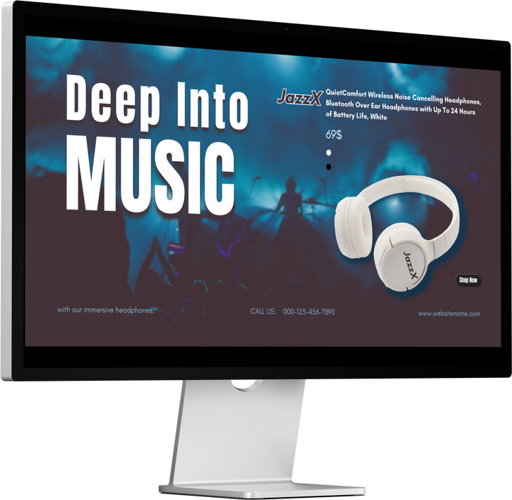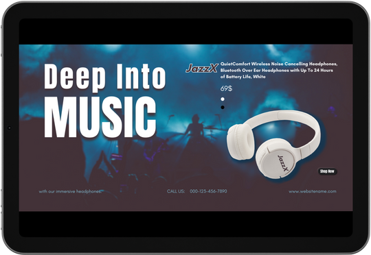 Created a modern and eye-catching web banner for an e-commerce platform featuring earphones. The banner focuses on the product's sleek design and exceptional audio quality. The design highlights the key features of the earphones while maintaining a professional and clean look, aligned with the brand’s identity.