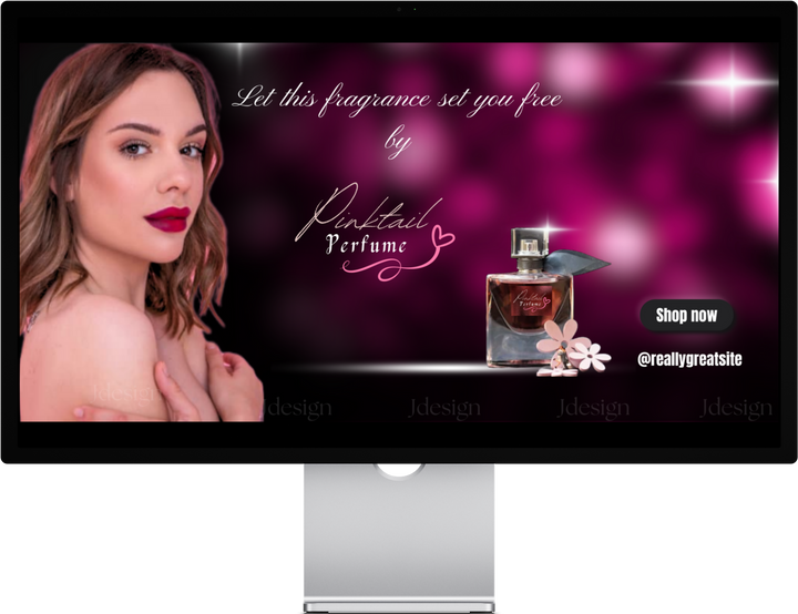 Crafted to evoke a sense of luxury and elegance, this web banner design captures the essence of premium fragrances. The visual layout combines sophisticated imagery with minimalistic text, ensuring a seamless balance between product and brand appeal. Designed for both desktop and tablet viewing, it highlights the allure of the scent with a modern, eye-catching style.